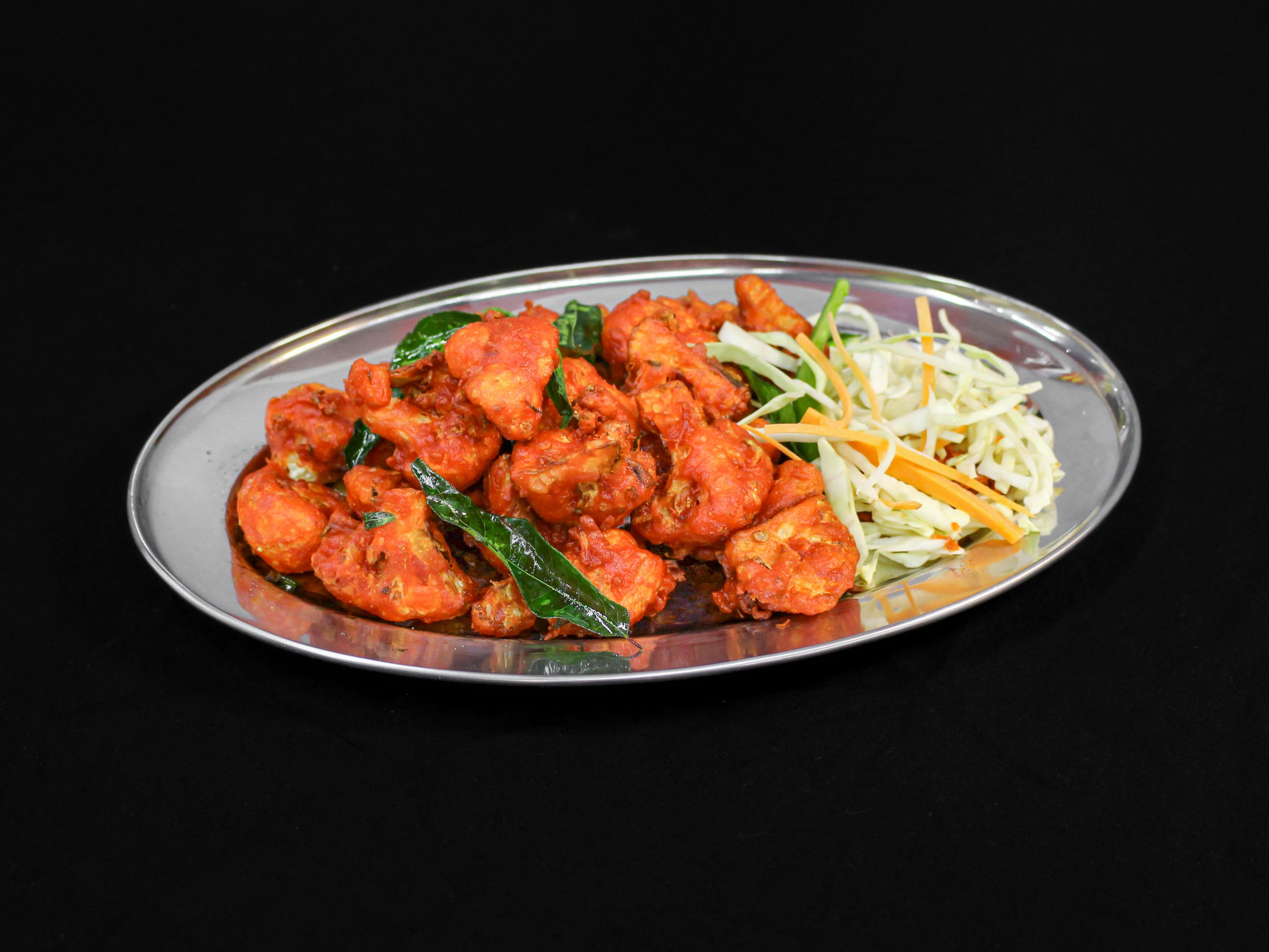 Cauliflower floret deep fried and sautéed with Manchurian sauce