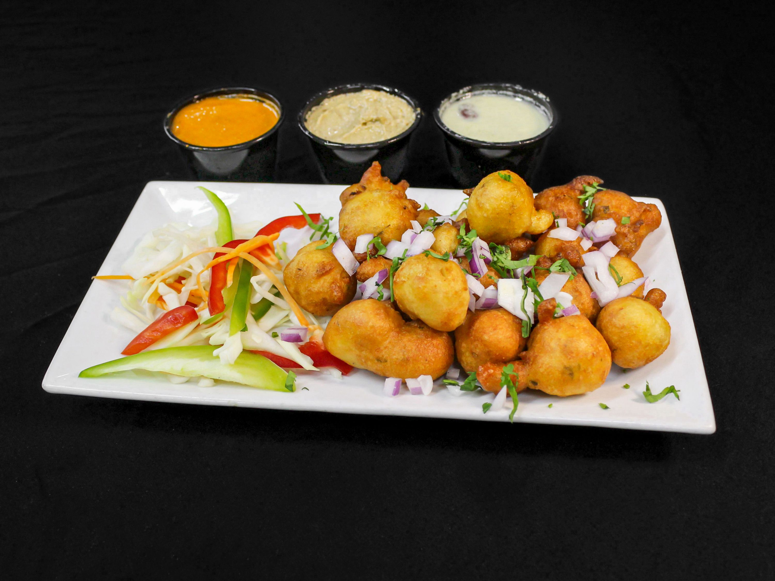 Mixed boiled vegetables coated with gram flour and deep fried