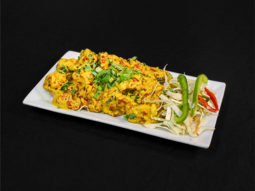 Indian cottage cheese cubes marinated in yogurt, blended with spices then grilled in a tandoor clay oven